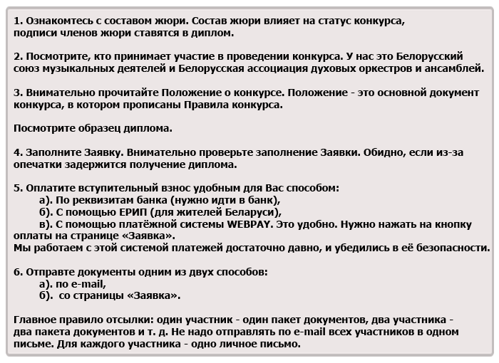 Главная         Заявка      Положение     Списки участников    Страница мастеров      Дипломы     Договор    Оплата      Жюри     Контакты      +375 29 8503558