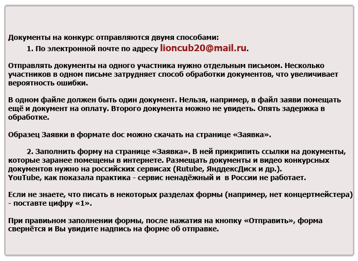 Заявка      Положение      Списки участников      Страница мастеров    Дипломы     Договор    Оплата      Жюри     Контакты    Объявления     +375 29 8503558